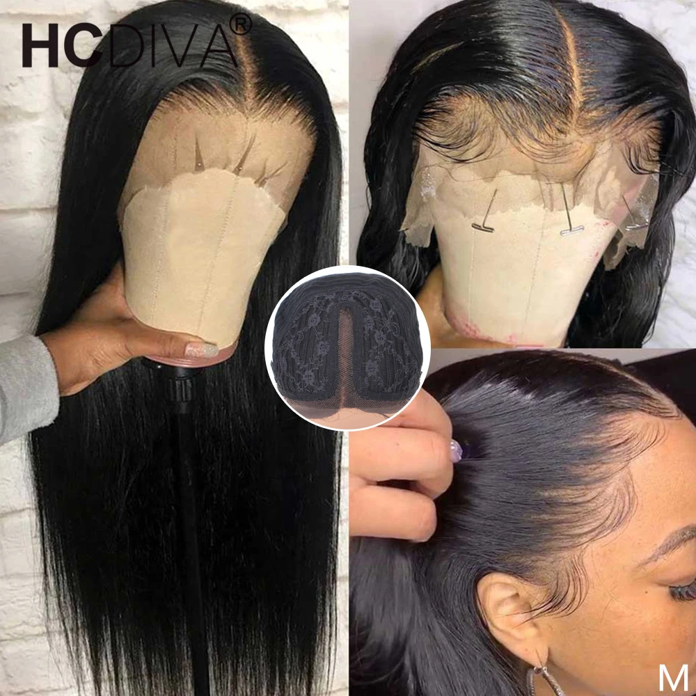 Mejor Pelucas de encaje de HCDIVA Official Store por Peluca de malla con división media de 30 pulgadas, cabello humano liso brasileño Remy, prearrancado con pelo de bebé, parte T, 13x1