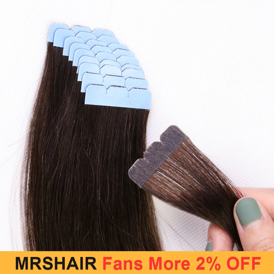 Name: MRSHAIR-Mini cinta para extensiones de cabello humano, 3x0,8 pulgadas, 100%, microinterfaz, pegamento adhesivo de doble cara, Rubio y marrón