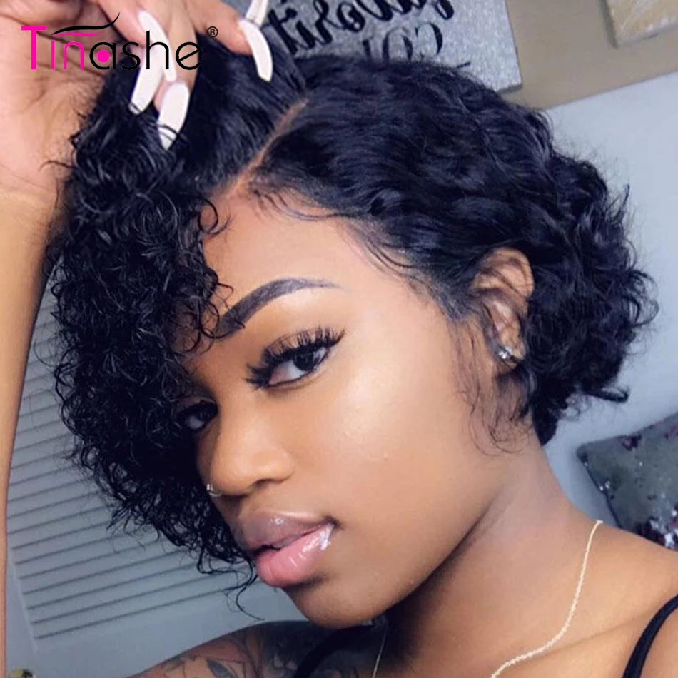 Name: Pelucas de encaje frontal de corte Pixie Bob Peluca de pelo corto rizado Bob, peluca brasileña de onda de encaje en agua, pelucas de cabello humano con cierre 4x4, Tinashe