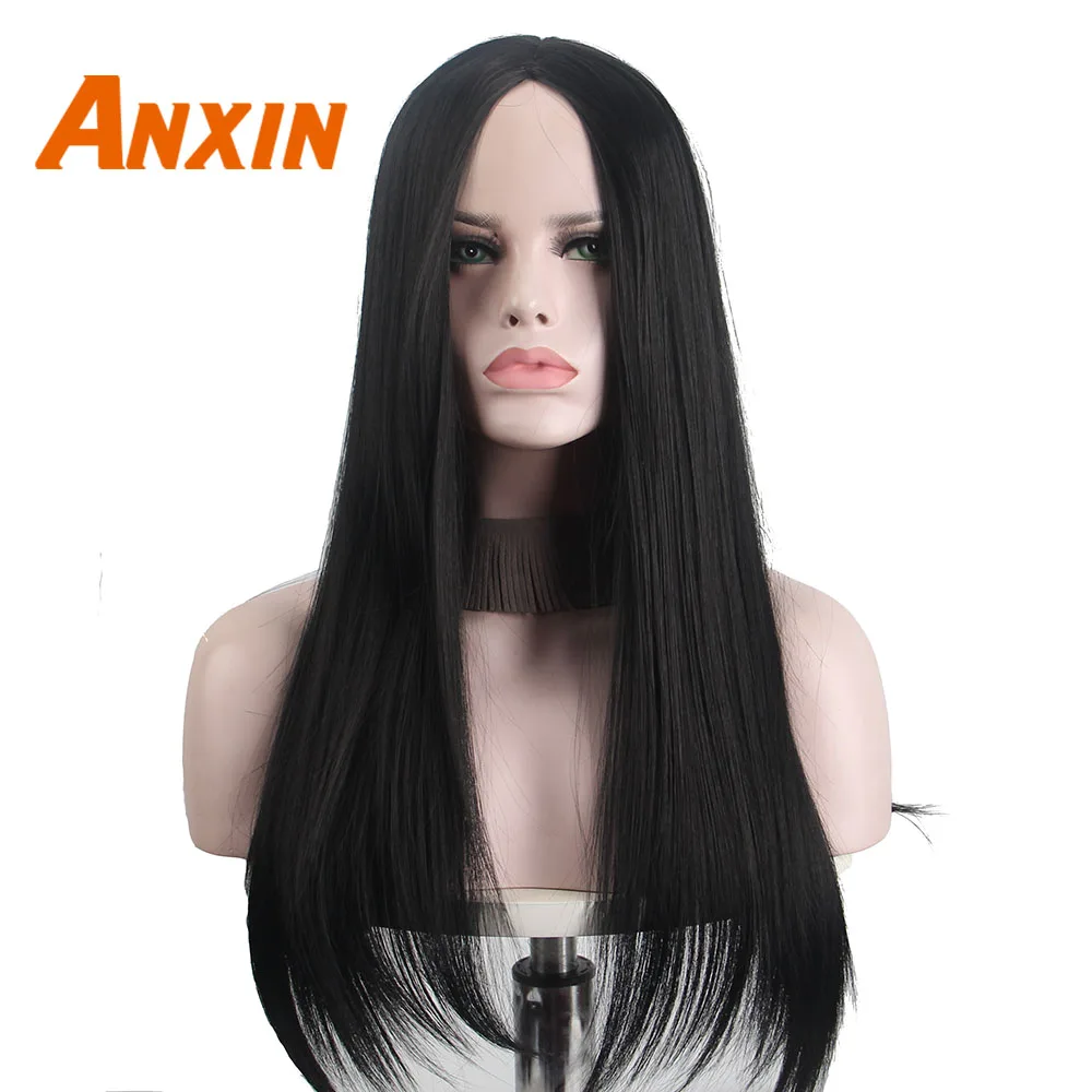 Igual que las imágenes. Debido a anxin Wig Factory Store conveniencia este Pelucas negras largas de 26 pulgadas, Pelo Natural Sintético liso