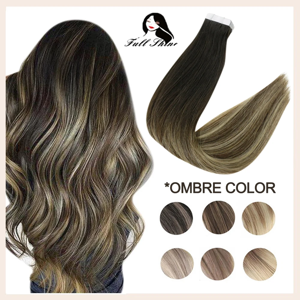 Mejor Extensiones de pelo de Full Shine Official Store por Extensiones de Cabello con cinta brillante, cabello humano Natural Remy de 100%, trama de piel invisible, sin costuras, Color rubio, pegamento para salón