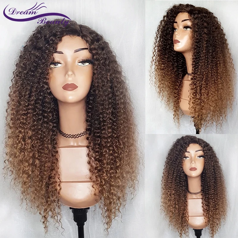Name: Peluca rizada de cabello humano para mujer Peluca de cabello humano rizado de estilo mongol degradado, con malla frontal 13X4, prearrancada, densidad del 180, Remy, Dream Beauty