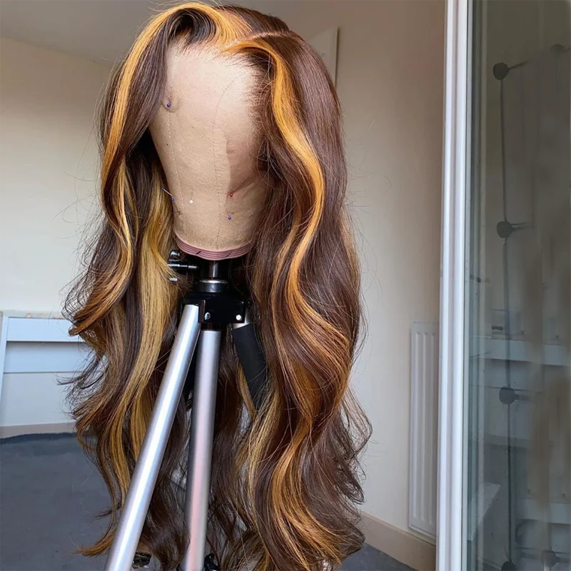 Name: Pelucas de cabello humano brasileño no Remy, postizo de encaje Frontal, 13x4, Color miel